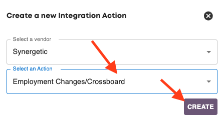 Then select Synergetic as the vendor and Employment Changes/Crossboard or Off boarding as the Action.