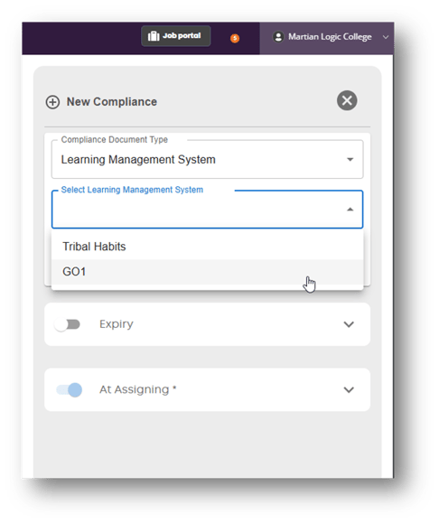 Select ‘GO1’ from the Learning Management System drop down