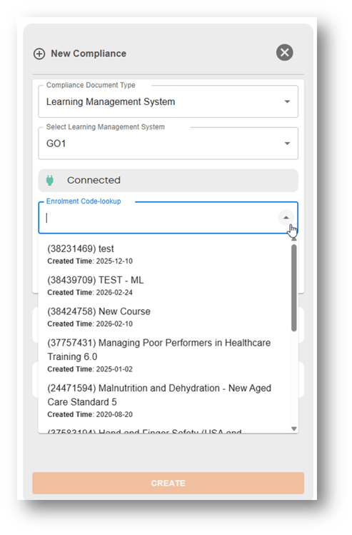 Select ‘Learning Management System’ from the Compliance Document Type drop down