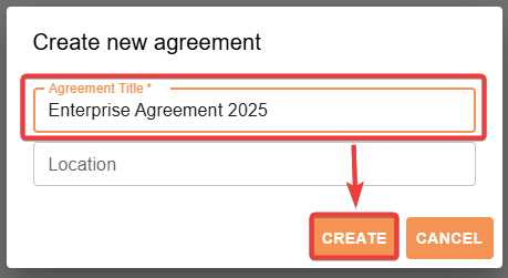 Enter your agreement name, then click Create