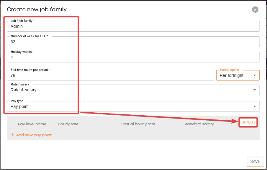After providing the Job family details, click on Import.