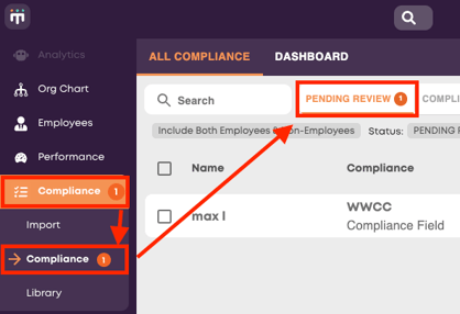 Any compliance items that require attention will be indicated by a notification number next to the Compliance button.