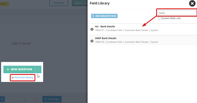 Fields used anywhere else in the system can be found in the library e.g. Name, Surname, Bank Details etc.