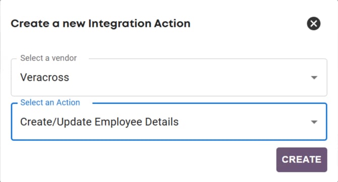 Then select Veracross as the vendor and Create/Update Employee Details as the Action.