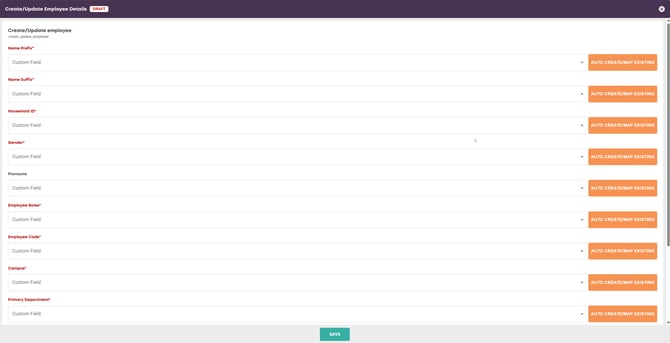 Then you can setup the Create/Update Employee Details Veracross action. You will need to map existing fields or create lookup fields via the "Auto create" button in your Martian Logic account to the Create/Update Employee Details Action. If you require assistance with this contact support@martianlogic.com or your Martian Logic account manager.