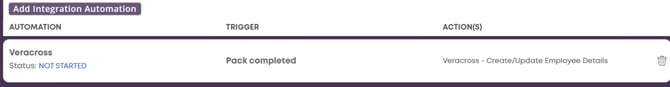 Now when an employee completes that pack with the new integration automation setup against it the system will automatically attempt to send them to Veracross you can see a record of this and all integrations in the Events page.